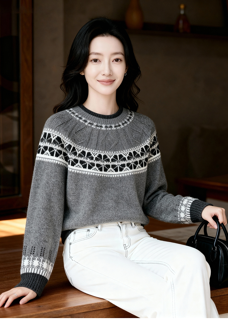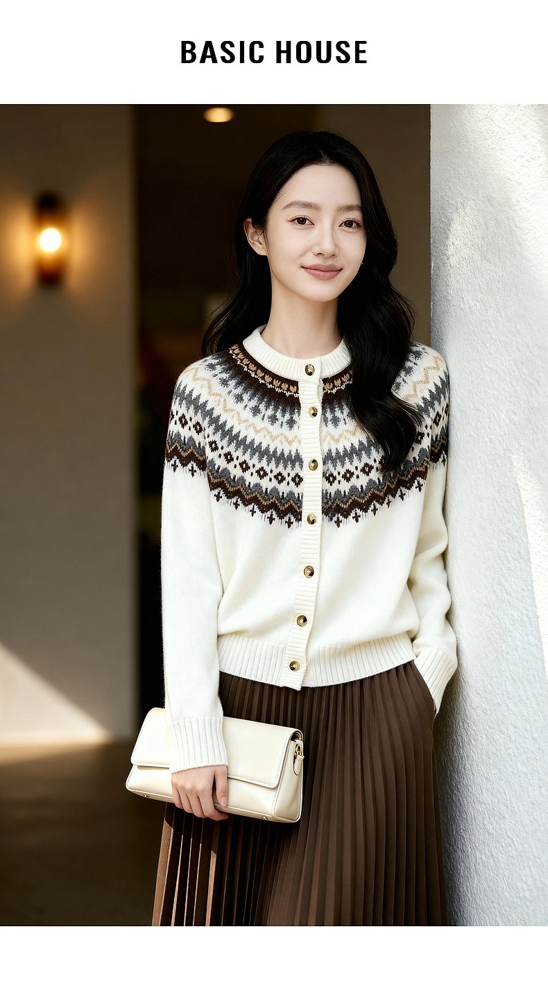 Basic House/百家好费尔岛开衫羊毛衫女