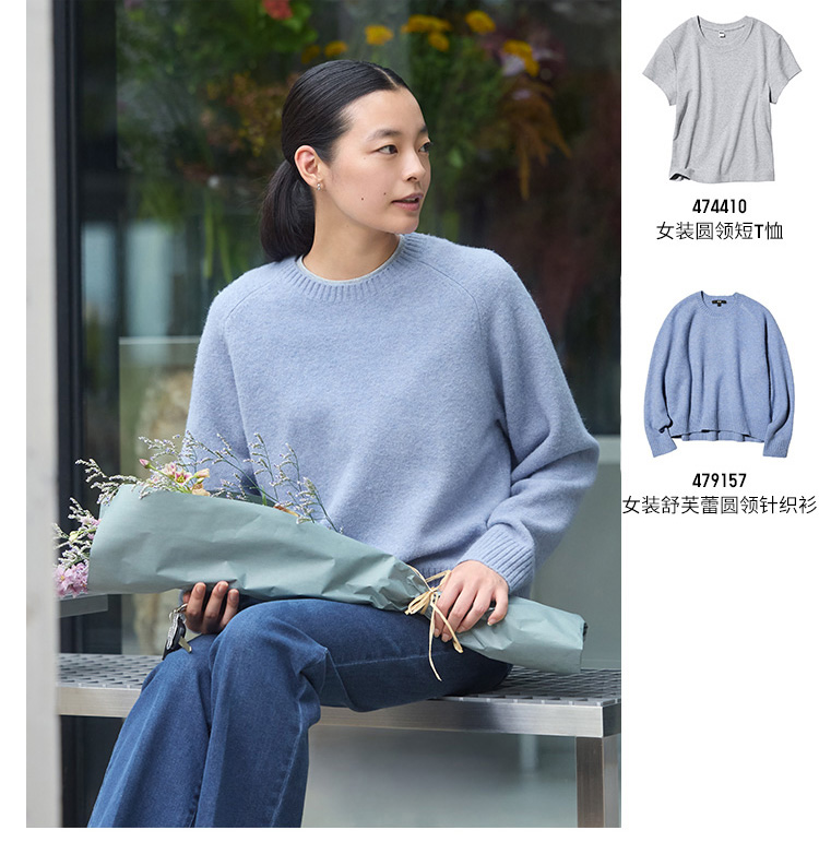 优衣库女装舒芙蕾圆领针织衫