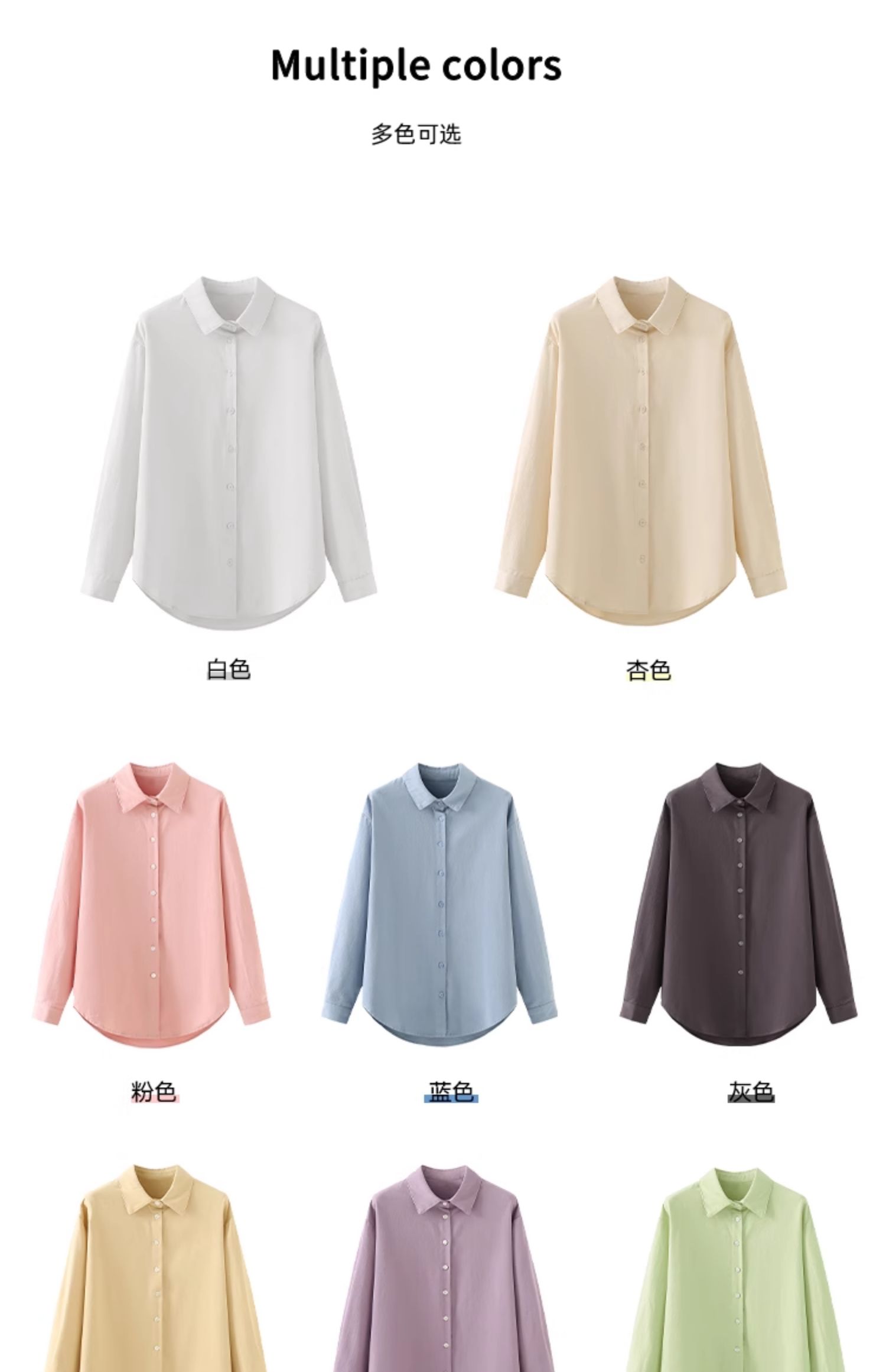纯棉蓝色衬衫女上衣休闲衬衣外套