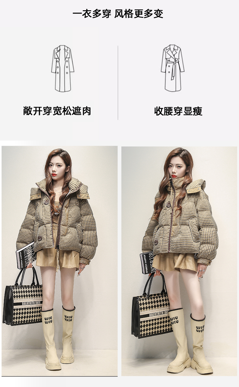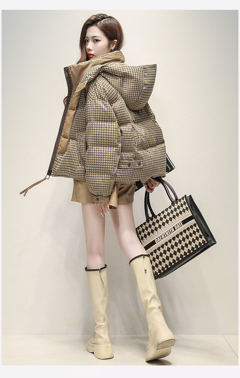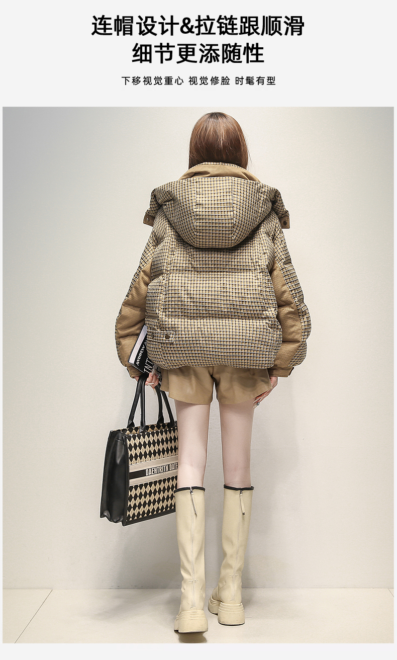 格子羽绒服女短款小个子潮牌